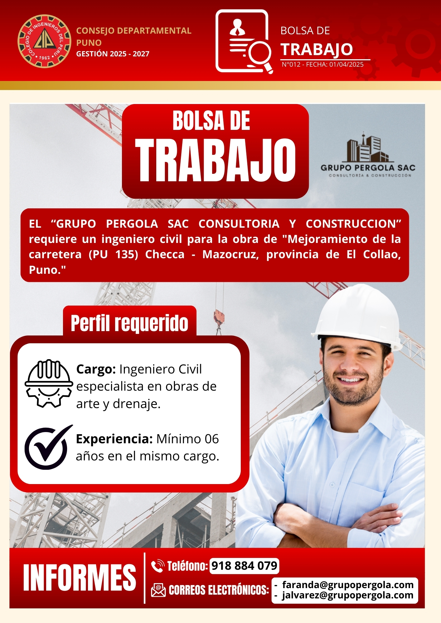 BOLSA DE TRABAJO 0037-CIP-CDP