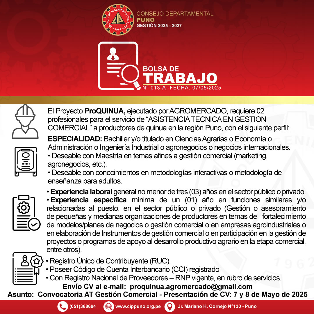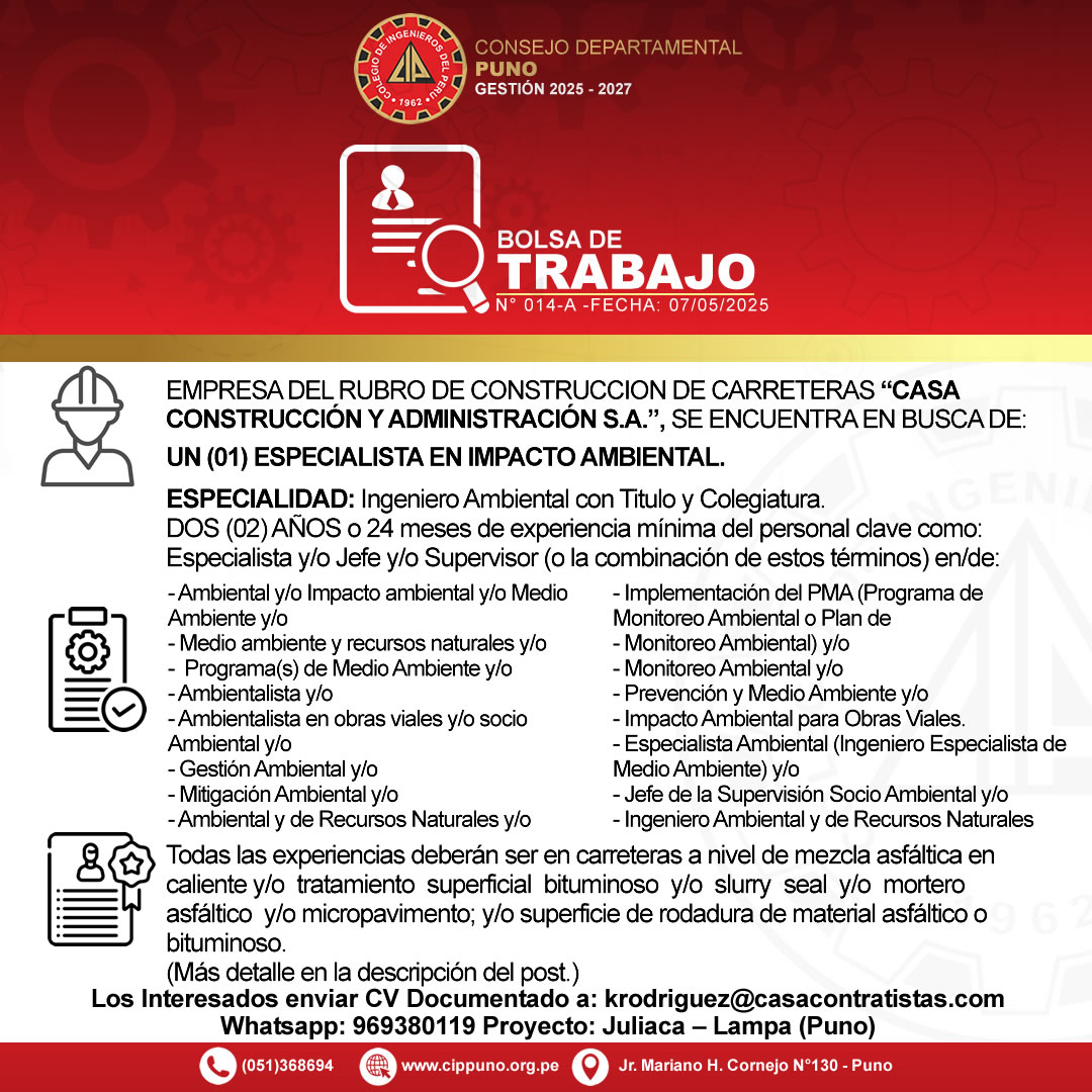 BOLSA DE TRABAJO 0014-CIP-CDP
