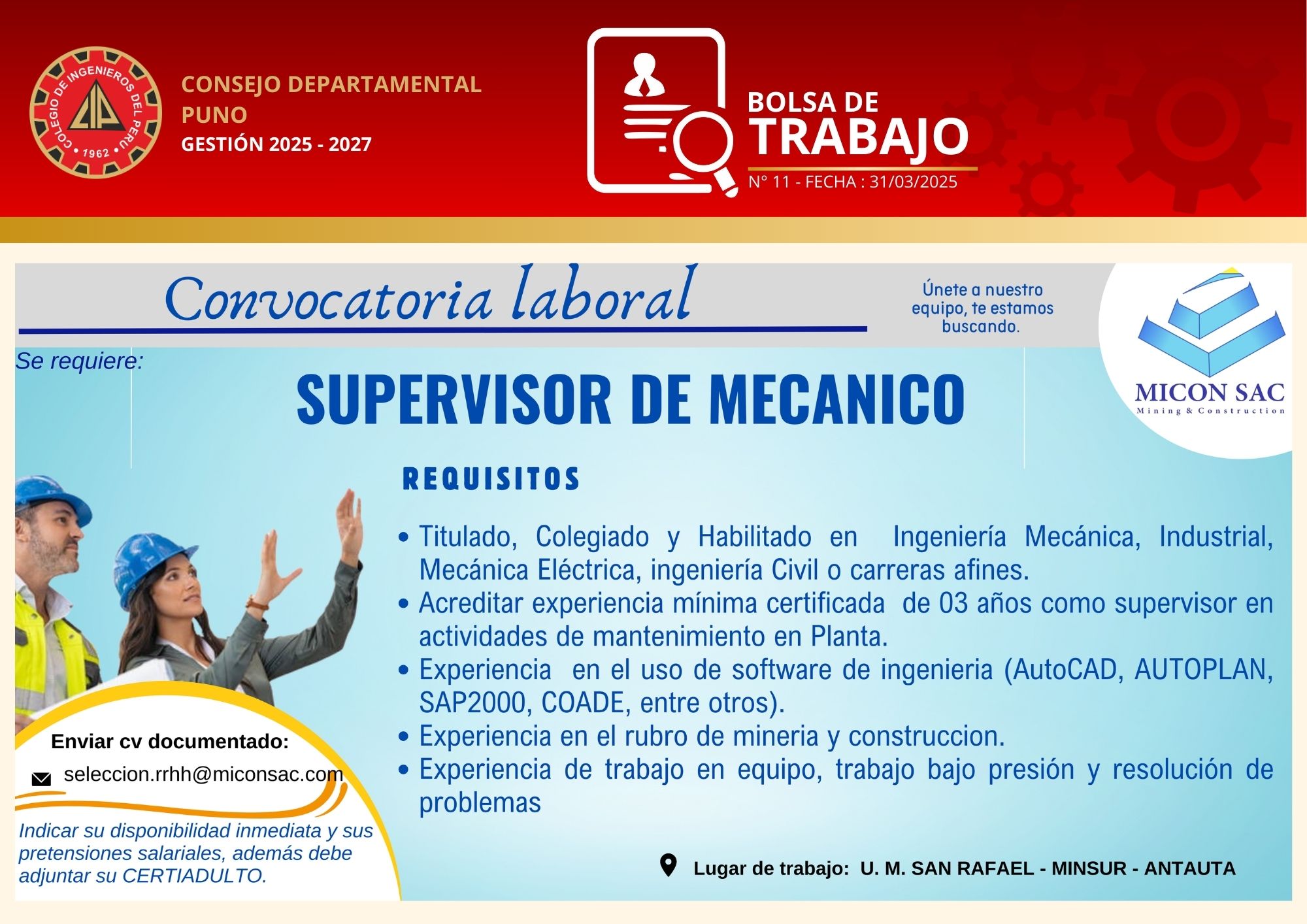 BOLSA DE TRABAJO 0011-CIP-CDP