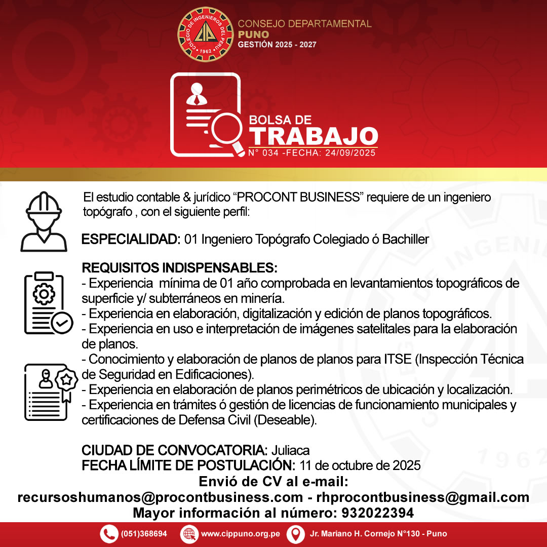 BOLSA DE TRABAJO 0034-CIP-CDP
