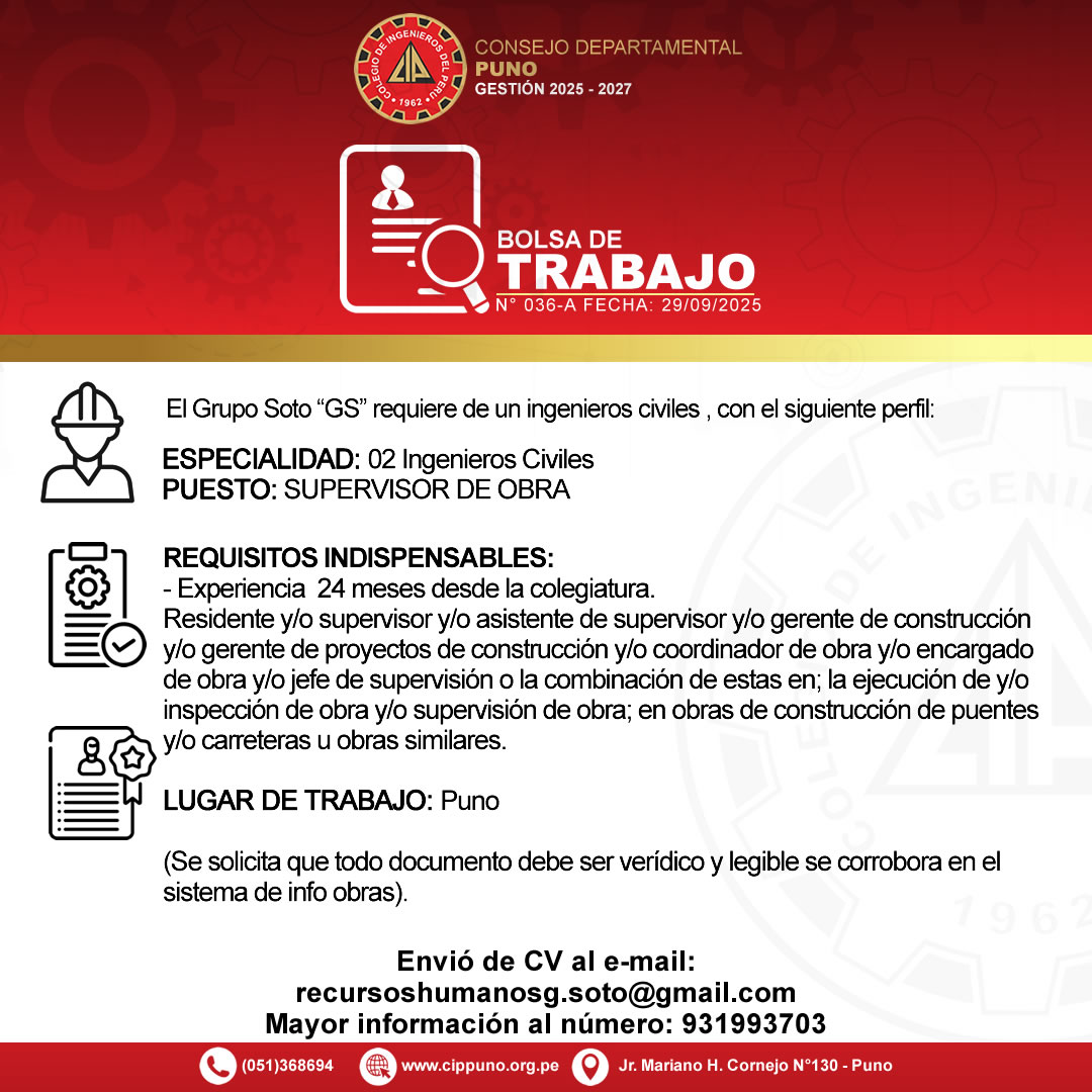 BOLSA DE TRABAJO 0036-CIP-CDP