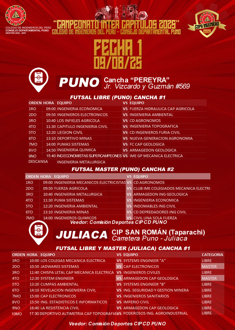 FIXTURE FECHA 01 COPA INGENIERO 2025