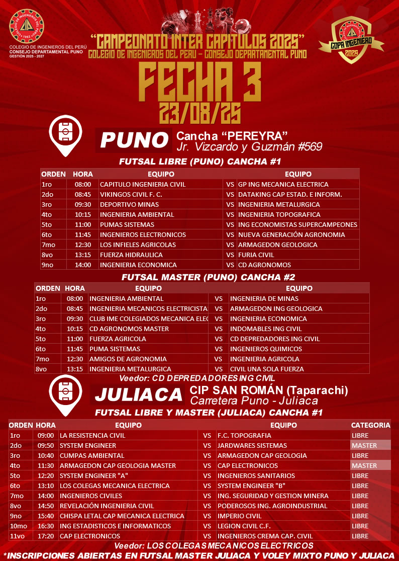 FIXTURE FECHA 03 COPA INGENIERO 2025