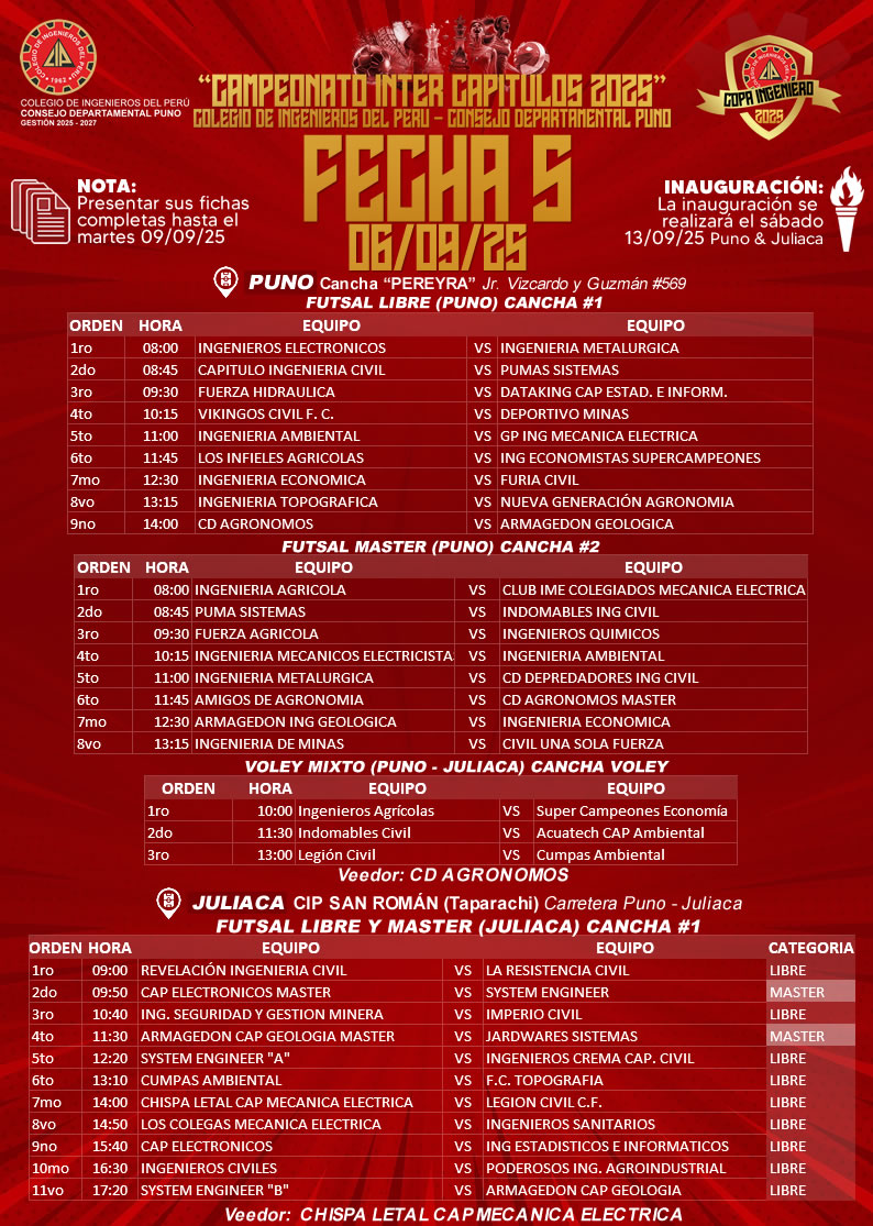 FIXTURE FECHA 05 COPA INGENIERO 2025